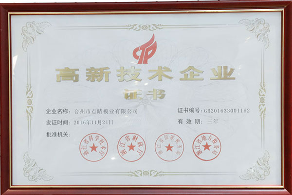 新投資1500萬(wàn),新購(gòu)設(shè)備1600T 3K 注塑機(jī),五軸高速銑2臺(tái),四軸高速銑2臺(tái),并獲得國(guó)家級(jí)高新技術(shù)企業(yè)證書(shū)。